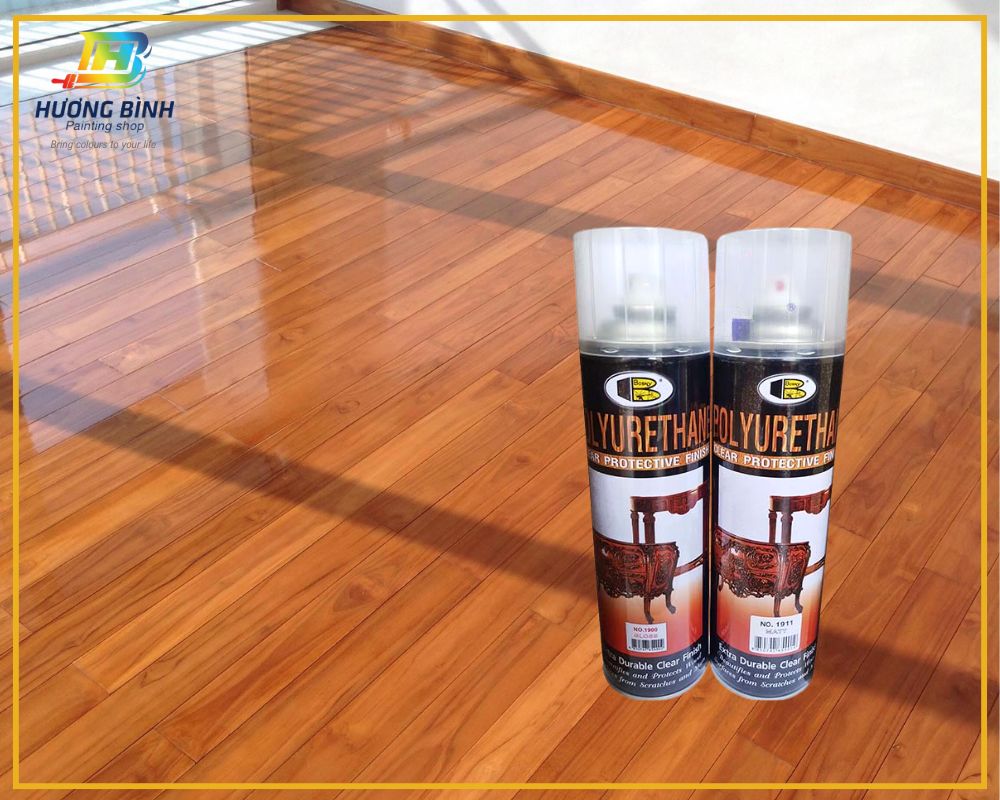Sau khi đã sơn lớp lót và bề mặt đã khô hoàn toàn, bạn có thể tiến hành sơn lớp phủ chính bằng sơn xịt bóng gỗ Bosny Polyurethane: